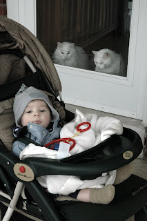 Some milder temps drew us out for a stroll... Sorry kitties! Alex enjoyed a bit of "off-roading" over the piles of icy snow here and there, and now mom enjoys a new blister!
