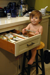 One of Alex's new favorite things to do is put the silverware away when we unload the dishwasher. Of course he puts everything exactly where its supposed to go!