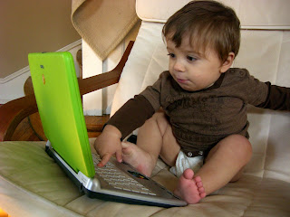 Here's a little tidbit: We kept telling him that he was a bear, and the next day he began signing "bear" and saying it! It sounds like "bah," but he says it and points to pictures and toys of bears, so we know that he's made the connection. Pretty cool! I can't wait for the language explosion that should be happening within the next month or two!