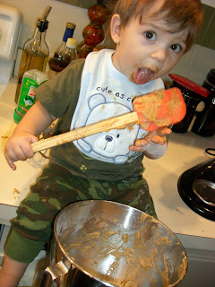 Alex's first experience with baking chocolate chip cookies. He loved the dough and loved the finished product even more! Of course, he asked for milk after finishing half a cookie.
