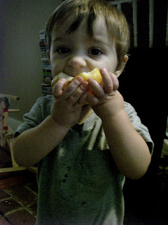 One of Alex's favorite foods right now- a nice ripe juicy pear!